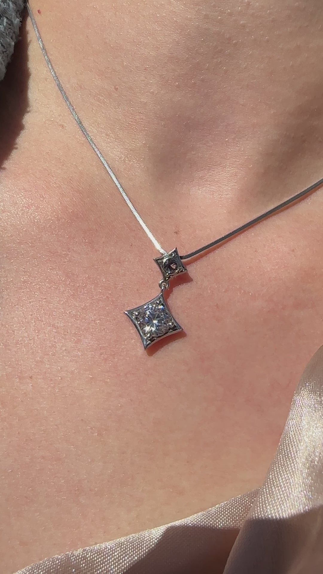 The pendant features a 3mm lab grown diamond in the bail (top) that flows into an elegant star-shaped setting with a 6mm lab grown diamond or stone of your choice.